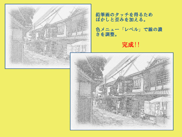 今回は、風景写真を精密に描かれた鉛筆画風にする勉強。
